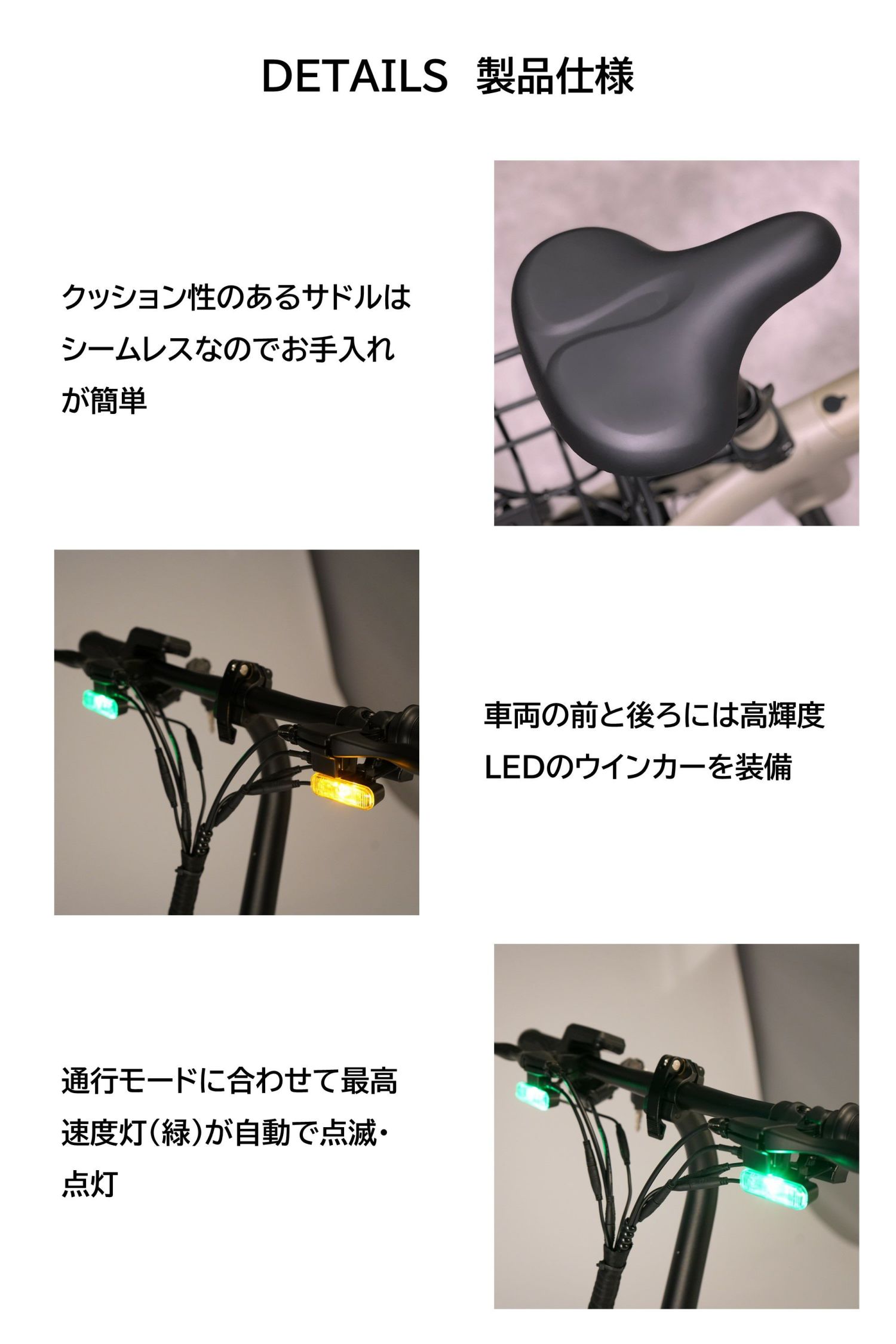 他の画像を見る 漕がない快感。e-FREEで世界が変わる BE401 e-FREE 01 グレージュ 数量限定 販売価格 ¥ 162,800 税込 この商品は「特定小型原動機付自転車性能等確認制度適合品」です 詳細を見る お気に入りに登録する