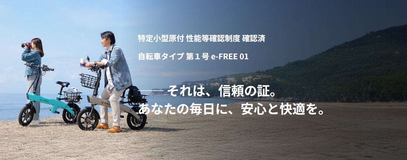 2023年7月に誕生した「特定小型原動機付自転車」区分に対応し、国土交通省が定める性能等確認制度において自転車タイプとして第一号の適合車両となりました。