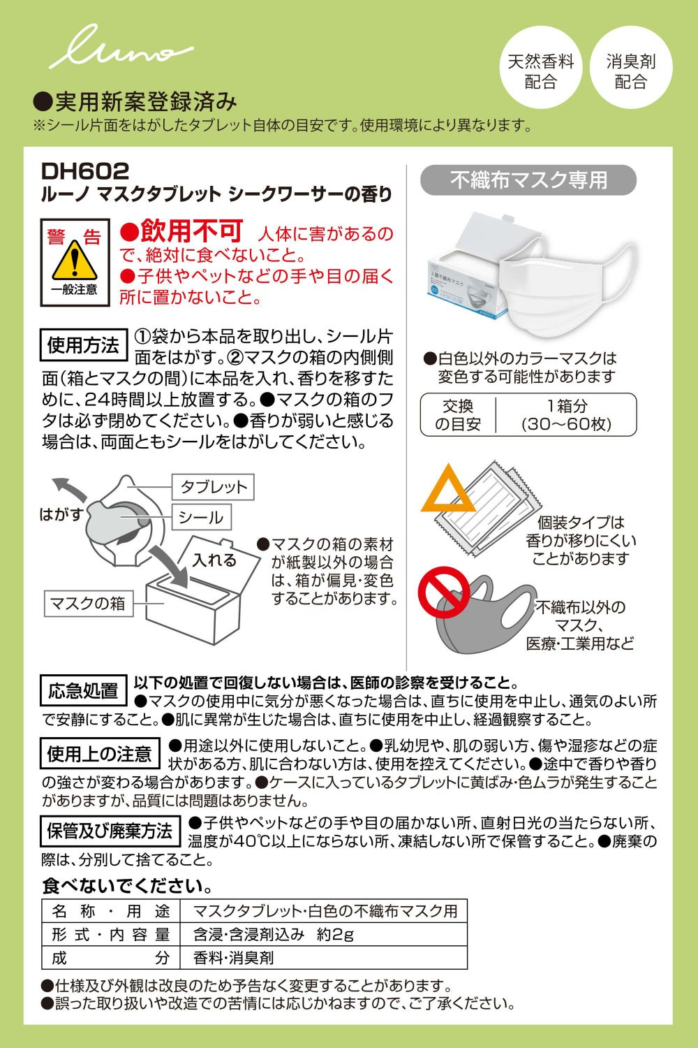 他の画像を見る 取り出した瞬間、マスクが香る DH602 ルーノ マスクタブレット シークワーサーの香り ルート限定品 メーカー希望小売価格 ¥ 550 販売価格 ¥ 550 税込 取り出した瞬間、マスクが香る 詳細を見る お気に入りに登録する