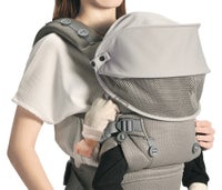 抱っこひもに装着すると、ふわりと赤ちゃんを守るような形状で日陰を作ります。