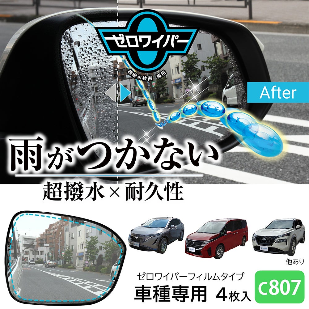 ゼロワイパー超撥水フィルム 車種専用 ドアミラー/サイドガラス用 4枚入