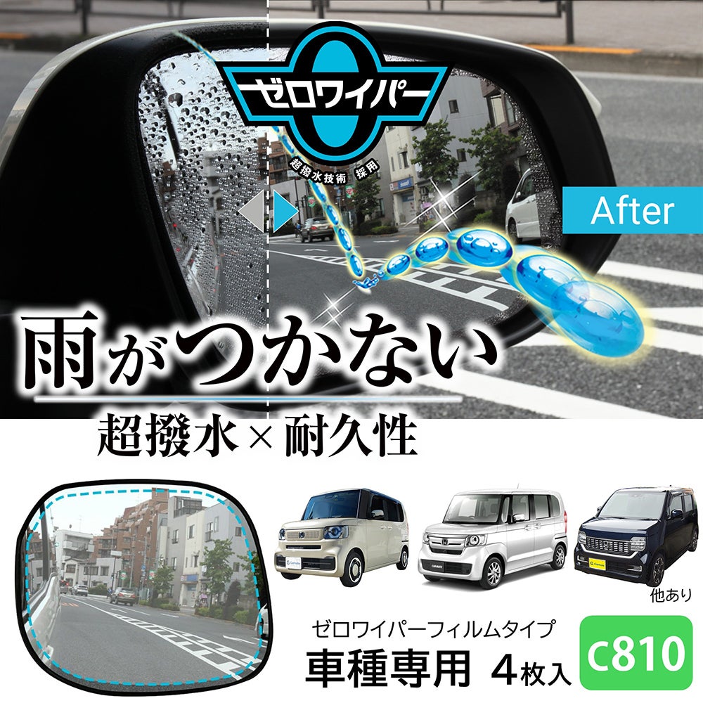 ゼロワイパー超撥水フィルム 車種専用 ドアミラー/サイドガラス用 4枚入