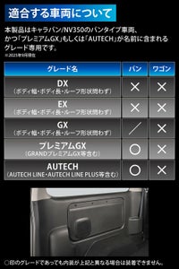 本製品はE26系 キャラバン/NV350キャラバン(2012(平成24)年6月~)の「バンタイプ車両」かつ「プレミアムGX」「AUTECH」グレード専用のMOLLEパネルです。