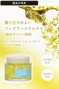 車内を透明感あるミモザの香りで包みます。固形(吸水ポリマー)タイプの置き型芳香剤。