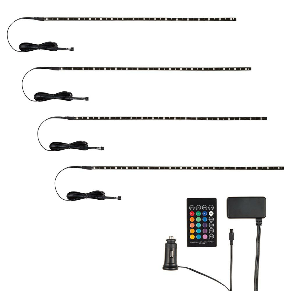 本製品は、車内の雰囲気を自由に演出できるテープLED(60cm × 4本)、コントロール&電源ユニット、リモコンがセットになったLEDライティングキットです。多彩なカラーと明るさの調整機能により、ドライバーや乗員の気分やシーンに合わせて車内空間をカスタマイズできます。夜のドライブをよりリラックスした時間に変えたり、仲間との移動を楽しい演出で盛り上げたりと、日常の移動が特別な体験へと変わります。