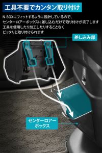 N-BOXにフィットするように設計しているので、 センターロアボックスに入れるだけで取り付けが完了します。