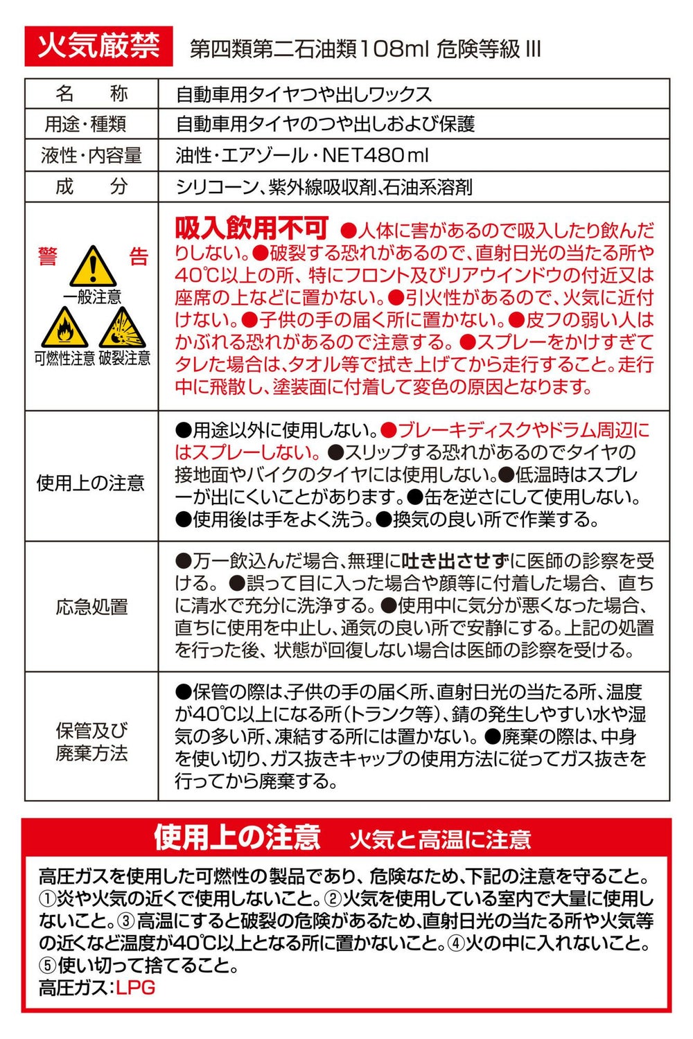 他の画像を見る ツヤ重視のタイヤワックス。光沢度は泡タイプの約2倍。雨にも強い超密着シリコーン。ミストタイプだからホイールに液ダレしない。UVカット剤配合。NET480ml。 C34 ブライトマジック 超艶タイヤWAX 販売価格 ¥ 698 税込 詳細を見る お気に入りに登録する