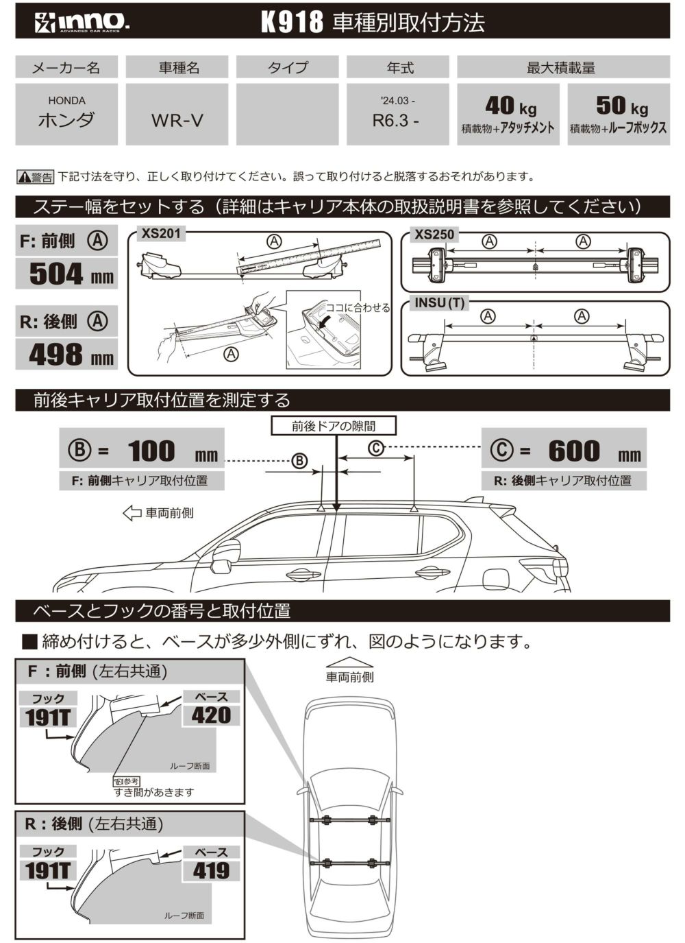 他の画像を見る 車種専用のため適合検索が必要です K918 取付フック(ホンダ WR-V 2024.03~/R6.3~) メーカー希望小売価格 ¥ 6,600 販売価格 ¥ 6,600 税込 車種専用のため適合検索が必要です 詳細を見る お気に入りに登録する